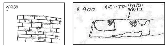 実験の様子や植物、細胞の図などを観察して描き写し提出することがあります。このときに、リアルに描くために影をつけたり、複数の線で描いたりするのは厳禁です。1本の線で、現物に忠実に描きましょう。「上手さ」は問われません。「正確さ」が評価基準です。絵が下手でも構いません。ちなみに上の図では、左が評価Bで右が評価Aのスケッチです。丁寧に描けば誰でもA評価(学校によって違いますが一番上の評価です)がもらえます。ちゃんと心をこめて描きましょう。